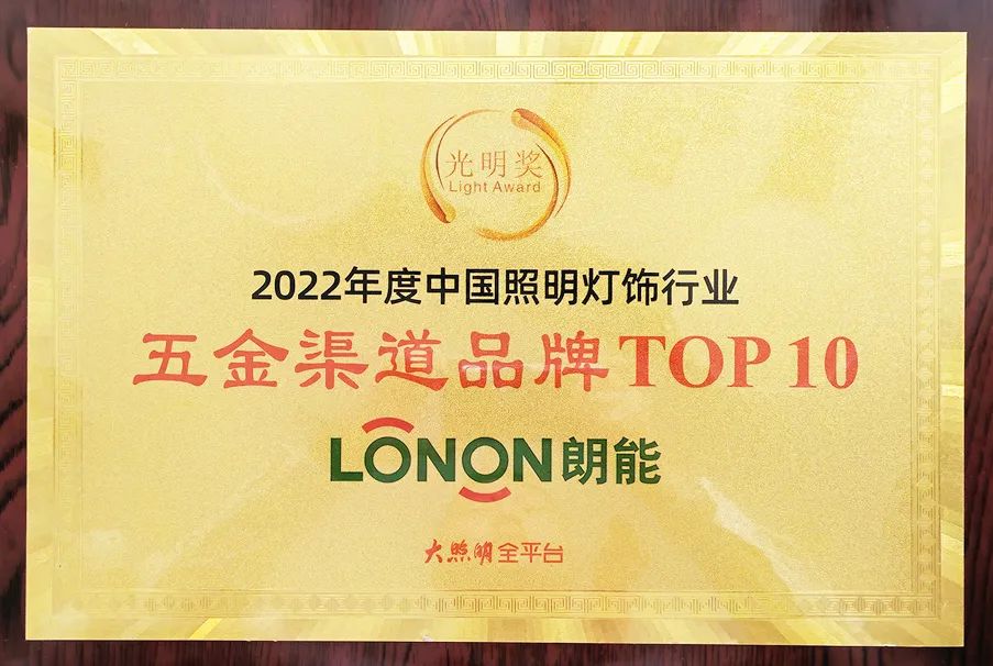 再次祝賀朗能電器,榮獲“光明獎”2022年度中國照明燈飾行業(yè)電工品牌TOP10、家居照明品牌TOP10、五金渠道品牌TOP10”三大獎項!