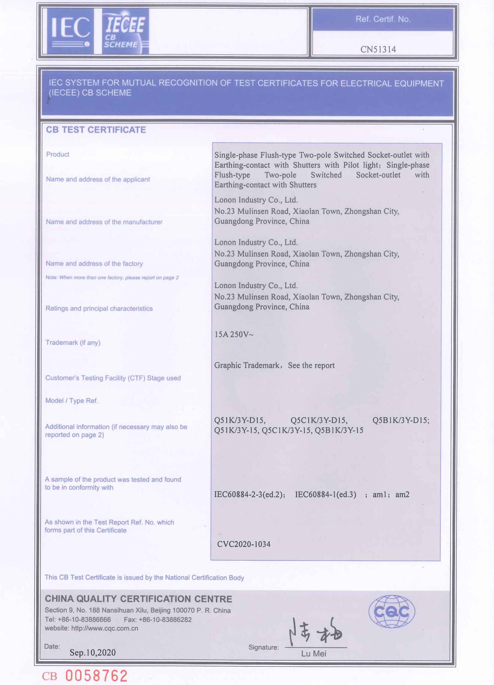 CN53489 K3K5K8 CB Test CERTIFICATE